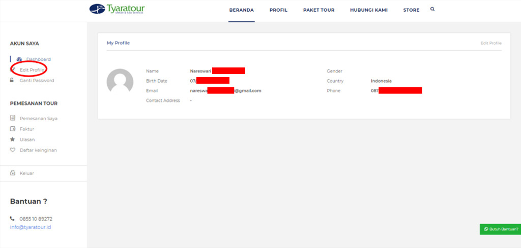 opsi “edit profile” pada menu “akun saya”.