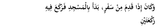 Setelah sampai pada tanah air hendaknya menyempatkan diri untuk shalat sunnah dua rakaat di masjid terdekat dengan rumah. Hal ini sesuai dengan riwayat dari Imam Al‐Bukhori: