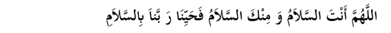 “Ya Allah, Engkau adalah Penyelamat (hamba‐hamba‐Mu dari Kebinasaan), dari Engkau pula keselamatan diharapkan, maka kekalkanlah kami –wahai Rabb kami‐ dalam keselamatan.”