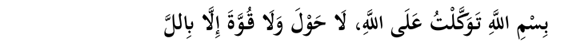 “Dengan nama Allah, aku bertawakal kepada Allah. Tiada daya dan kekuatan kecuali dengan Allah.”