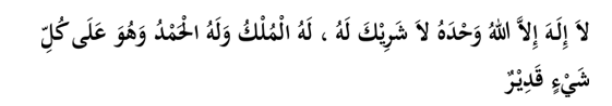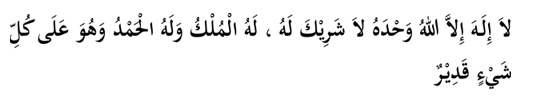“Tidak ada sesembahan yang haq melainkan Allah semata, tidak ada sekutu bagi-Nya, bagiNya kerajaan dan segala puji, dan Dia Mahakuasa atas segala sesuatu’.”