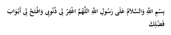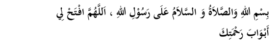 “Dengan menyebut Asma Allah, dan shalawat serta salam semoga tercurah kepada Rasulullah, Ya Allah bukalah pintu rahmat‐Mu untukku.”