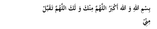 “(Dengan Nama Allah dan Allah Mahabesar). Ya Allah ini dari‐Mu dan milik‐Mu. (Ya Allah terimalah (amalan ini) dariku).”