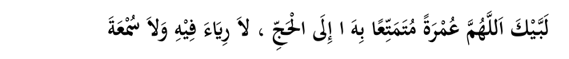 “Aku penuhi panggilanMu untuk menunaikan ibadah umrah yang dilanjutkan dengan haji, tidak ada padanya riya dan sum’ah.”
