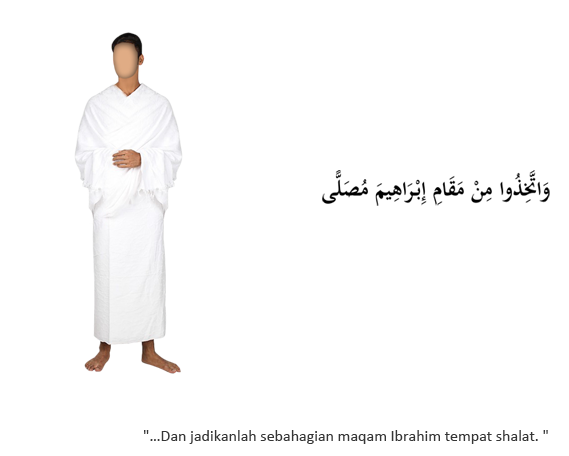 Selanjutnya, untuk ikhwan diharapkan untuk menutup kembali pundak dengan kain Ihram seperti halnya sebelum memulai prosesi Umrah dan segera menuju Maqam Ibrahim seraya membaca: